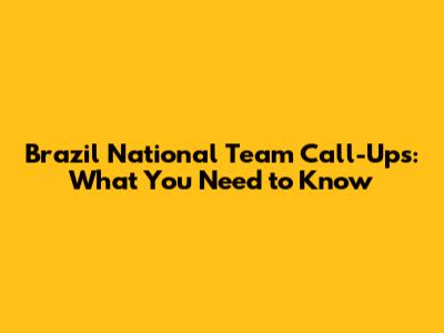 Brazil National Team Call-Ups: What You Need To Know