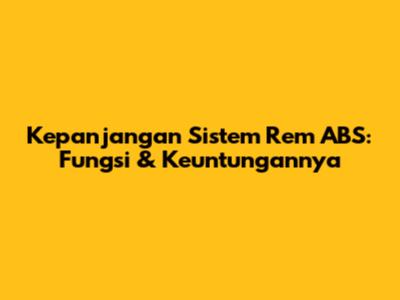 Hey guys! Pernah denger istilah ABS di mobil atau motor? ABS itu singkatan dari Anti-lock Braking System. Nah, di artikel ini, kita bakal bahas tuntas tentang sistem rem ABS ini. Mulai dari apa itu ABS, fungsinya, keuntungannya, sampai cara kerjanya. Jadi, buat kalian yang pengen tau lebih dalam tentang teknologi keselamatan yang satu ini, simak terus ya!