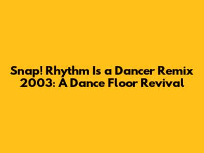 Snap! Rhythm Is A Dancer Remix 2003: A Dance Floor Revival